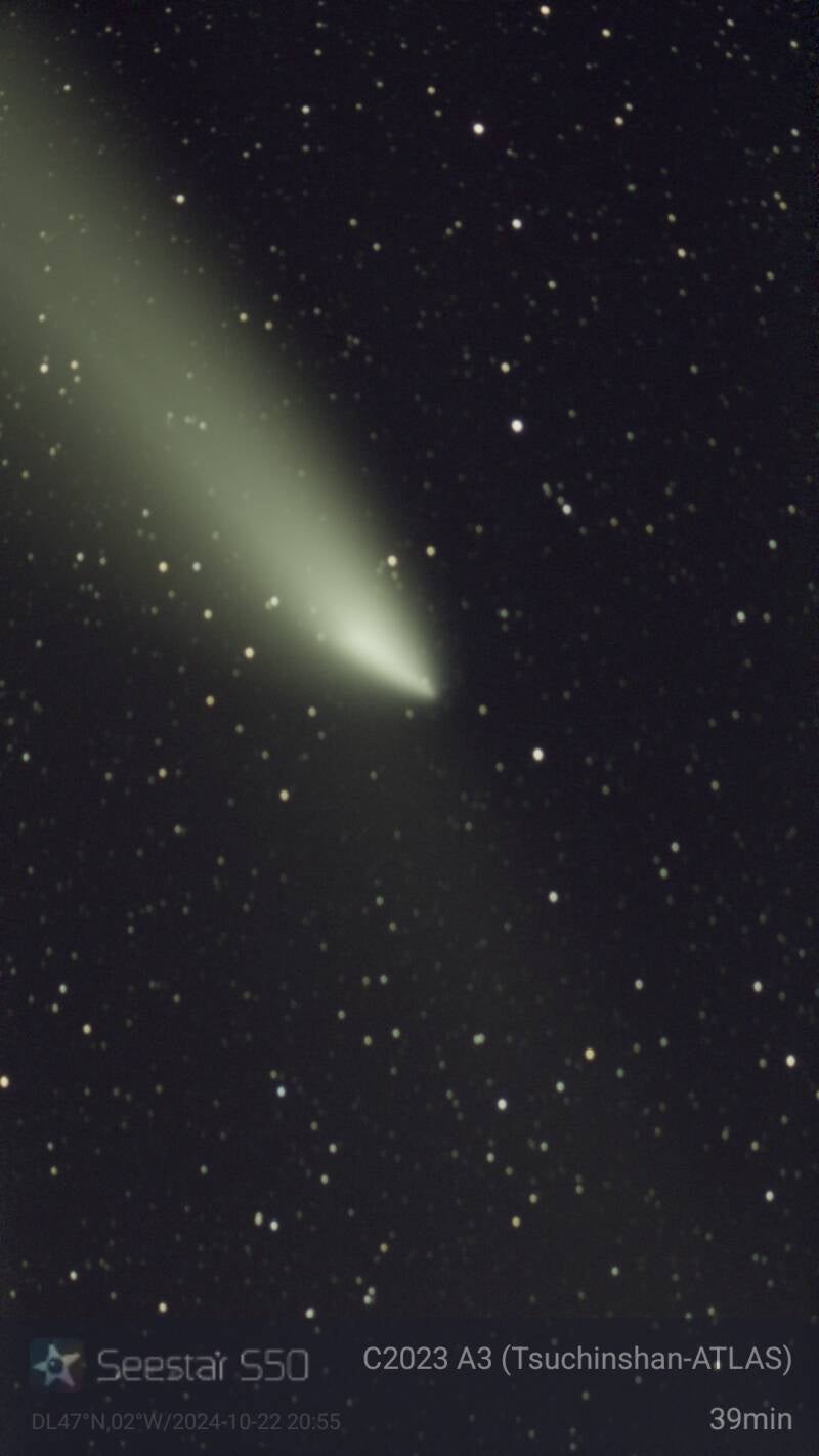 Deux images de la comète prises les 22 et 23 octobre par Didier au Seestar