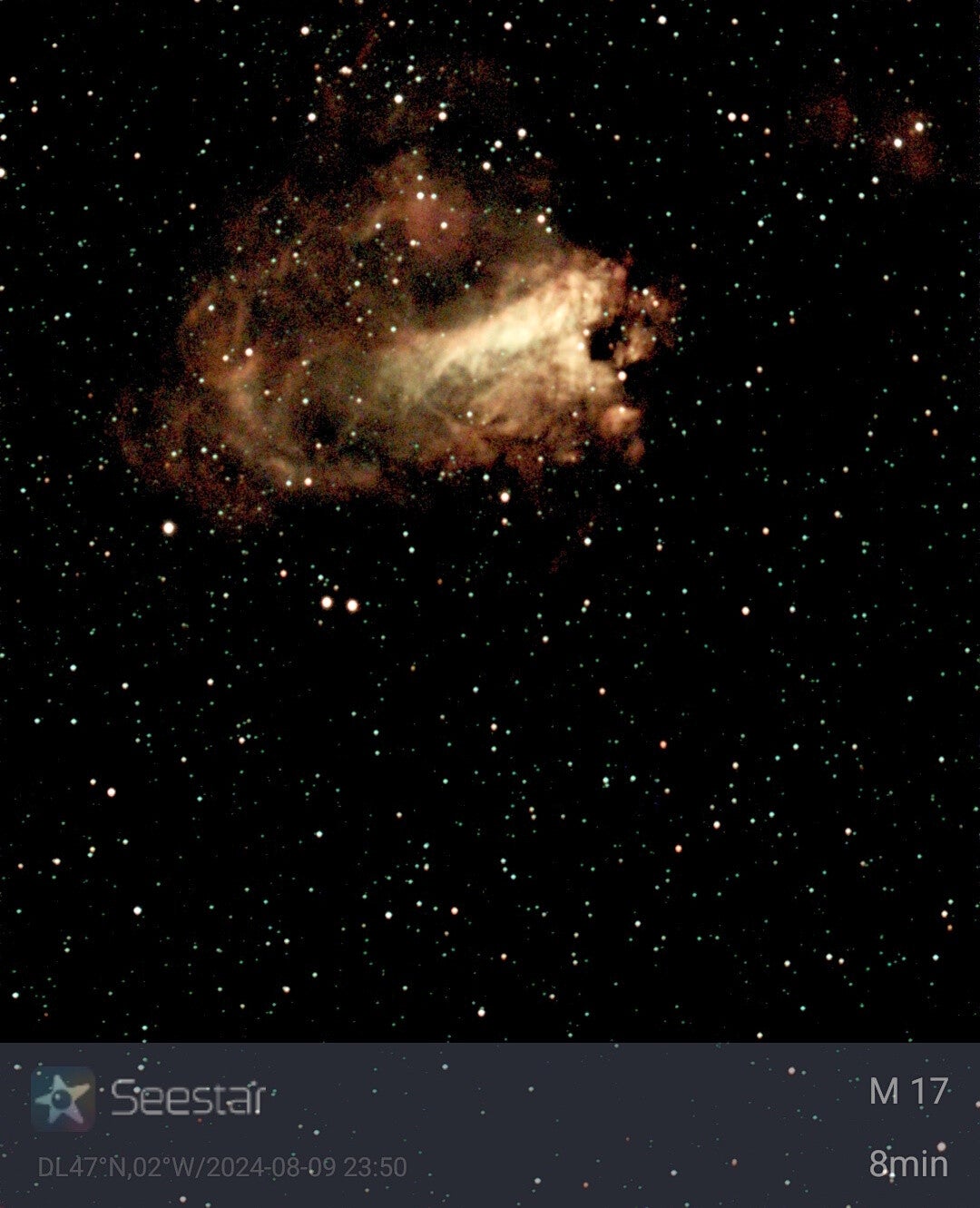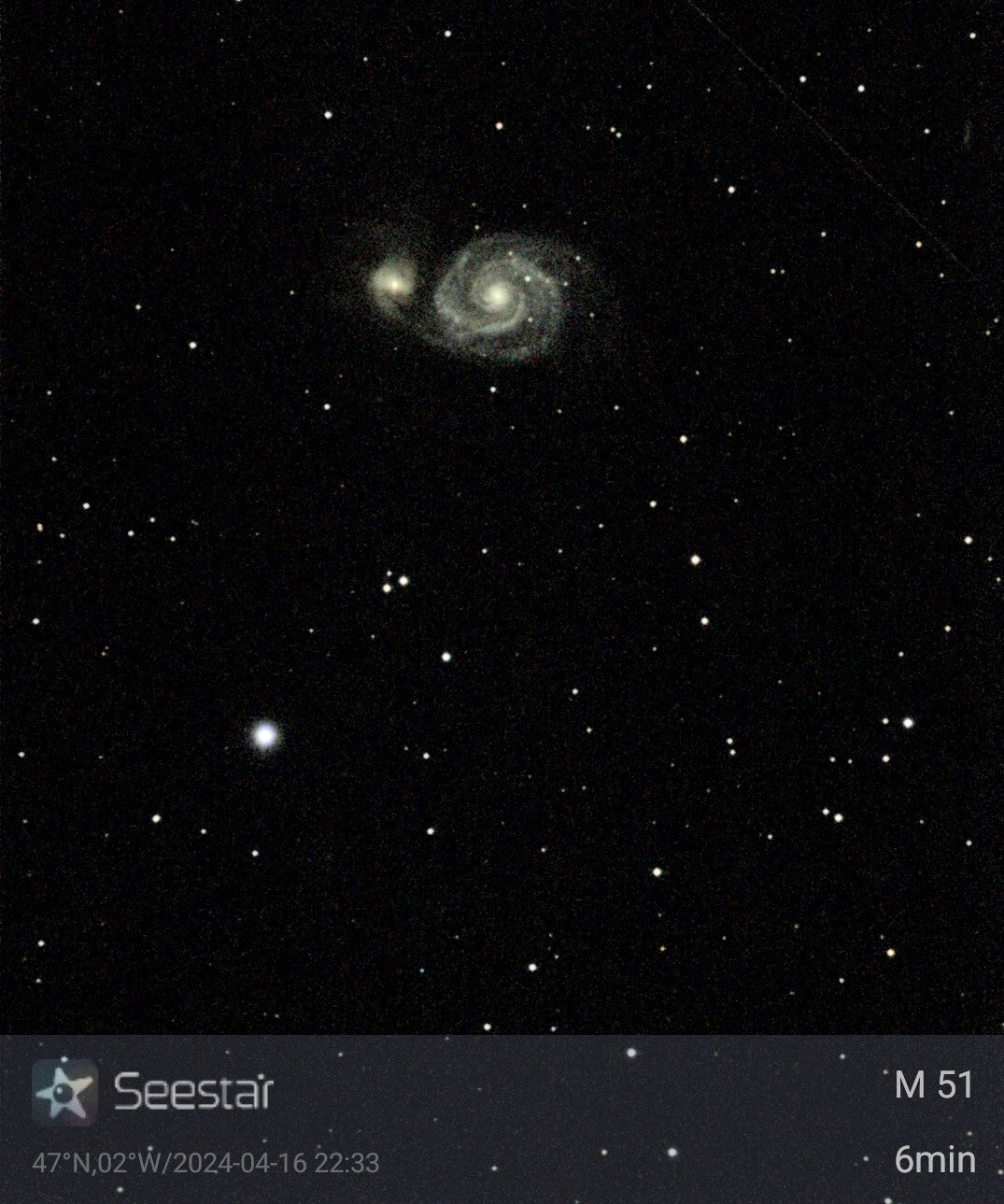 Image prise avec un Seestar Zwo 50mm / 250mm. Pose de 6mn