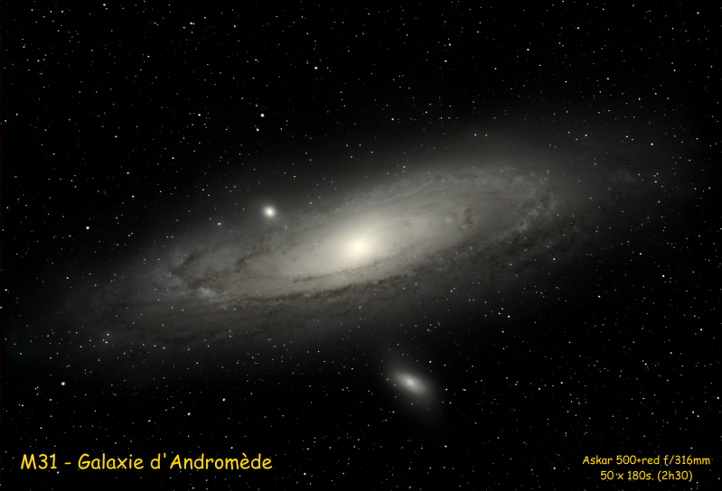 M31 - Galaxie d'Andromède accompagnée des galaxies satellites M32 et M110