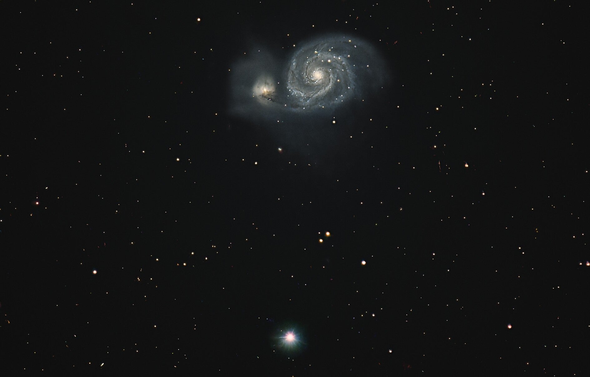 Galaxie du tourbillon dans la constellation des Chiens de Chasse. Couple de galaxies en interaction (NGC5194/95)