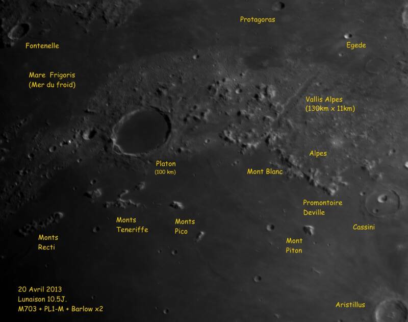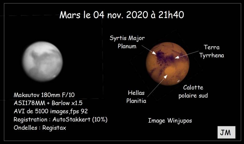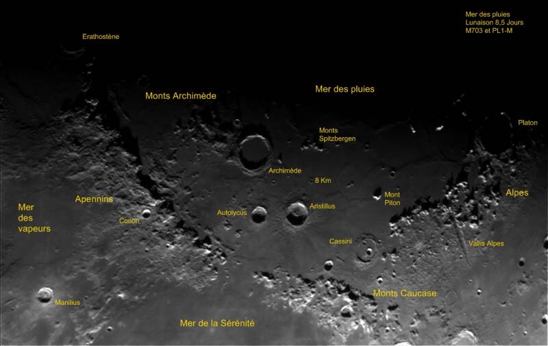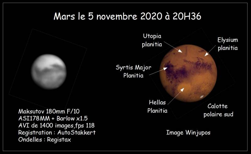 Image prise au foyer d'un telescope Maksutov Intes M703 (180mm, f/1800mm)